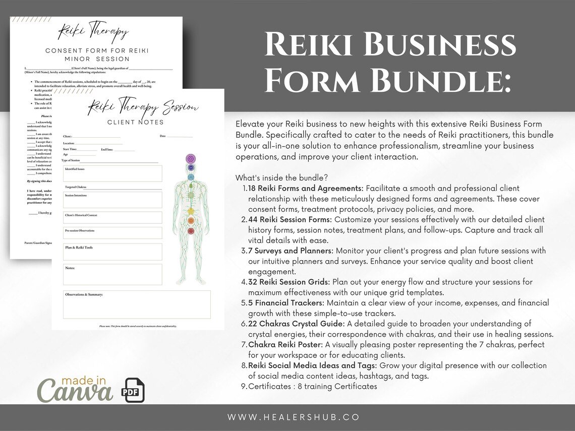 Reiki Business Forms Bundle | Toolkit for Reiki Practitioners | Agreements, Session Forms, Planners, Trackers ,Intake Form, Certificates