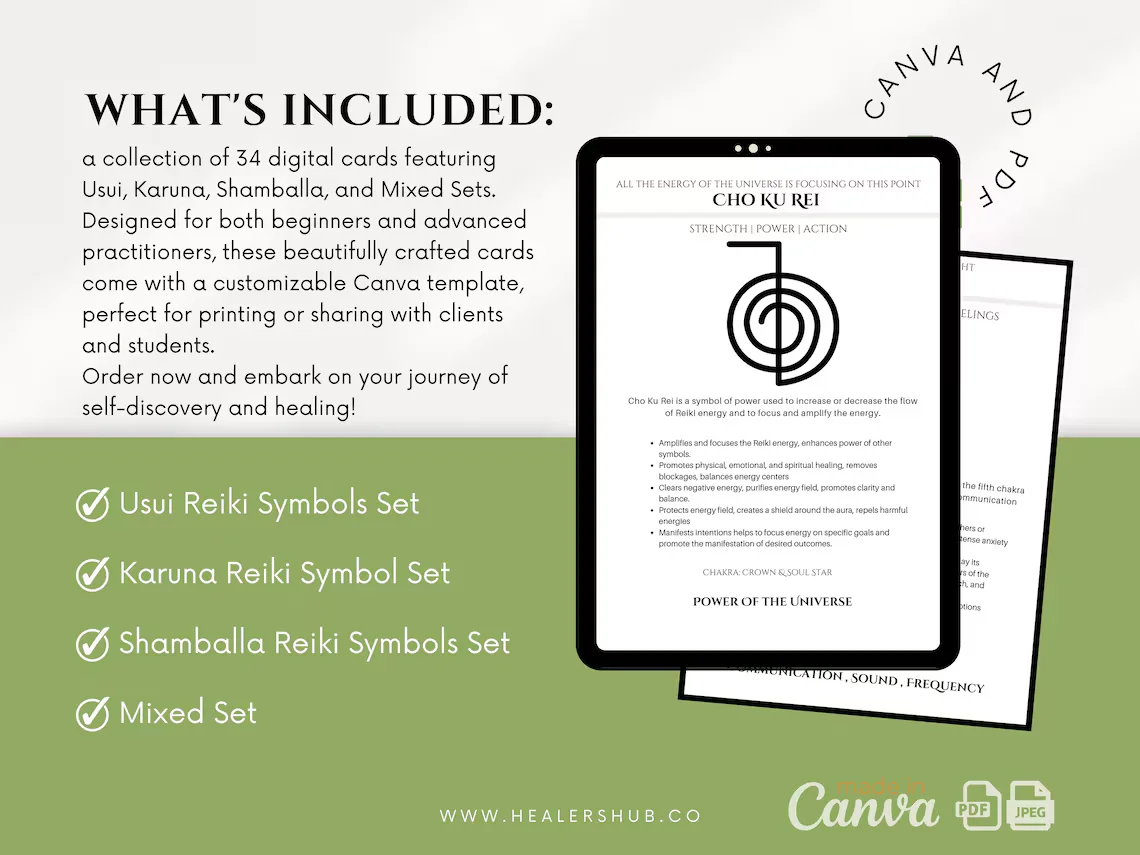 Reiki Symbols, Reiki Cards, Reiki Digital Download, Reiki Healing, Usui Reiki, Karuna Reiki, Shamballa Reiki, Reiki Practitioner, Reiki Master, Energy Healing, Spiritual Growth, Self-Healing, Holistic Healing, Healing Tools, Canva Template, Reiki Training, Reiki PDF